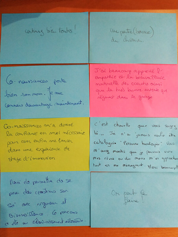 Co Naissances a aussi le droit à ses posts-its 😉, chaque participant peut ainsi faire un retour sur ce que le parcours lui a apporté. Extraits de la promo n°3 :